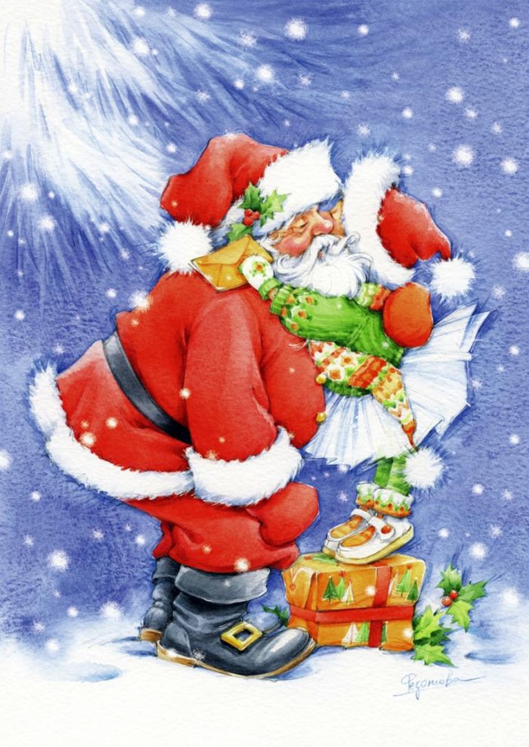 ![Дед Мороз акварель]()