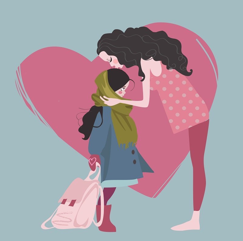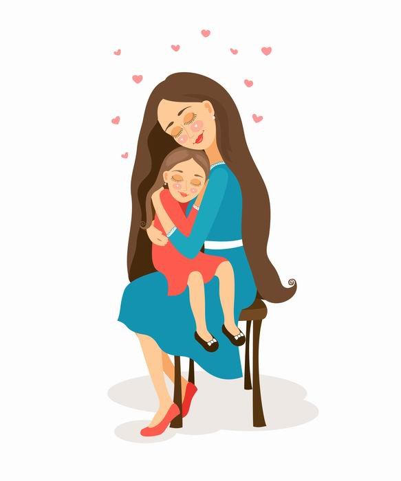 ![Мама с дочкой обнимаются рисунок]()