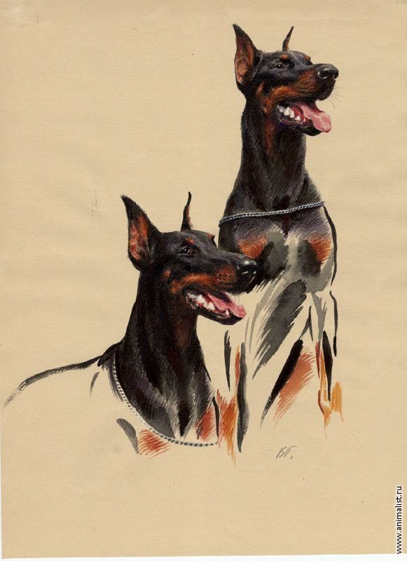 Доберман - это порода среднего размера с красивыми черными и коричневыми окрасами. Они известны своими грациозными движениями и выразительным взглядом. Милые рисунки доберманов могут быть разнообразными: начиная от дружелюбных изображений, показывающих их игривую натуру, до серьезных и внушающих уважение портретов. Их элегантные формы и мощные конечности делают доберманов отличными объектами для художественных произведений и иллюстраций. Безусловно, доберманы могут стать прекрасным и привлекательным мотивом для любителей живописи и графики.