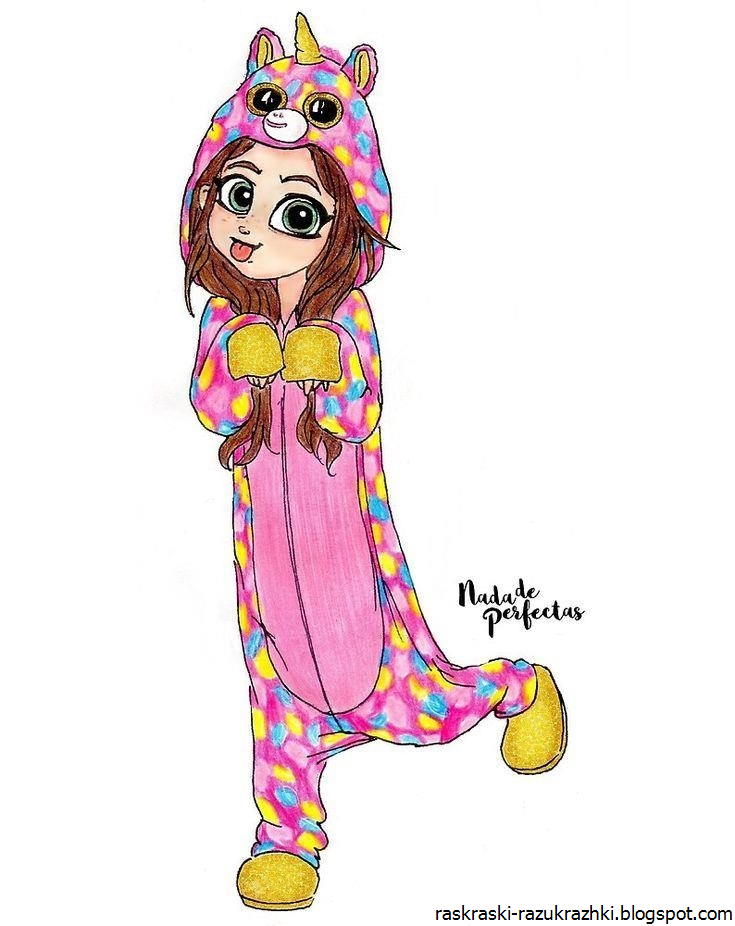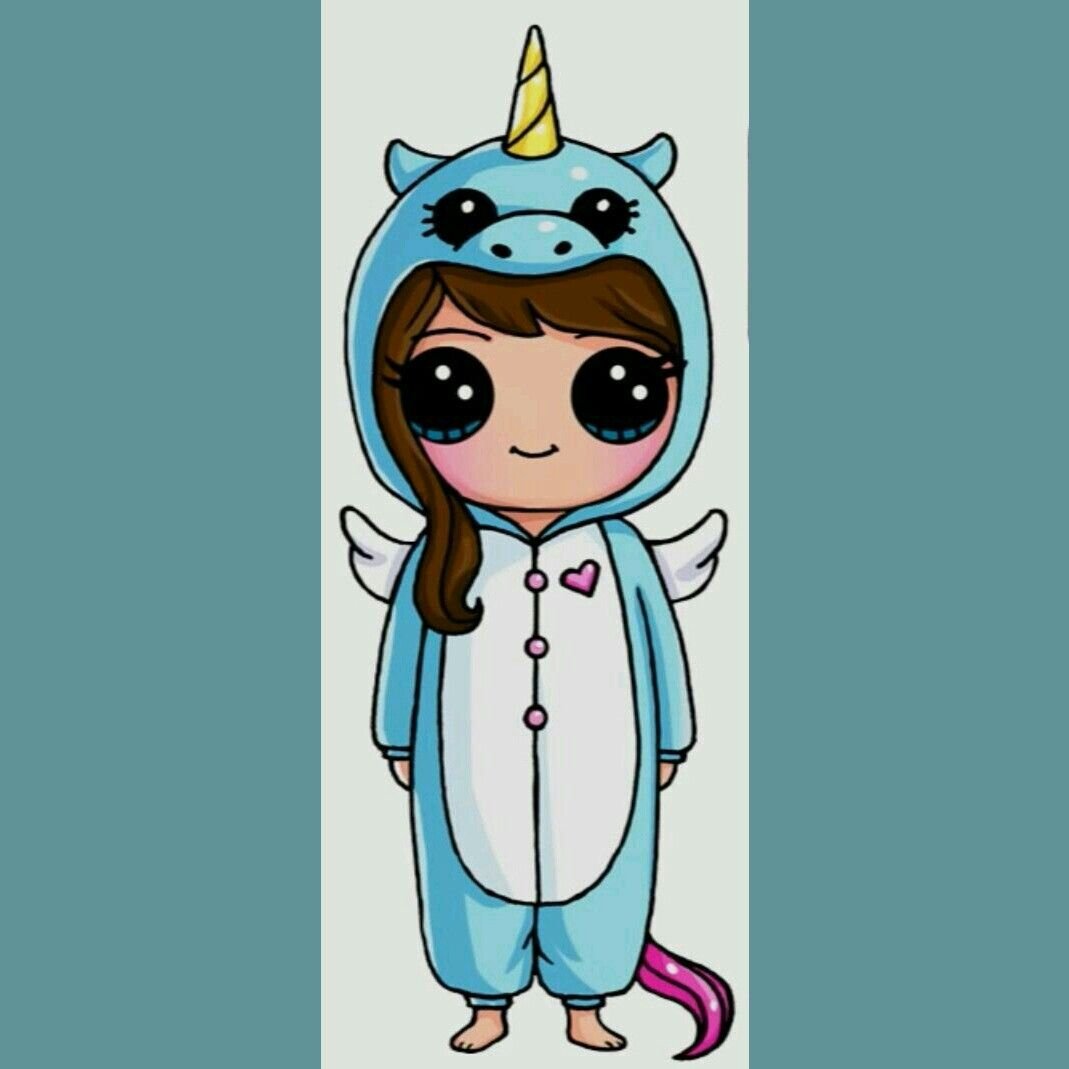 ![Девочка в пижаме единорога рисунок]()