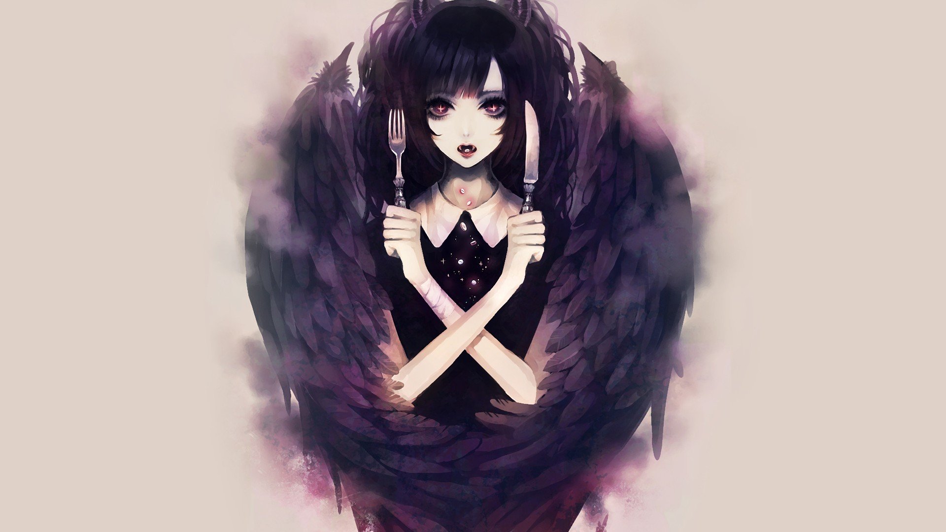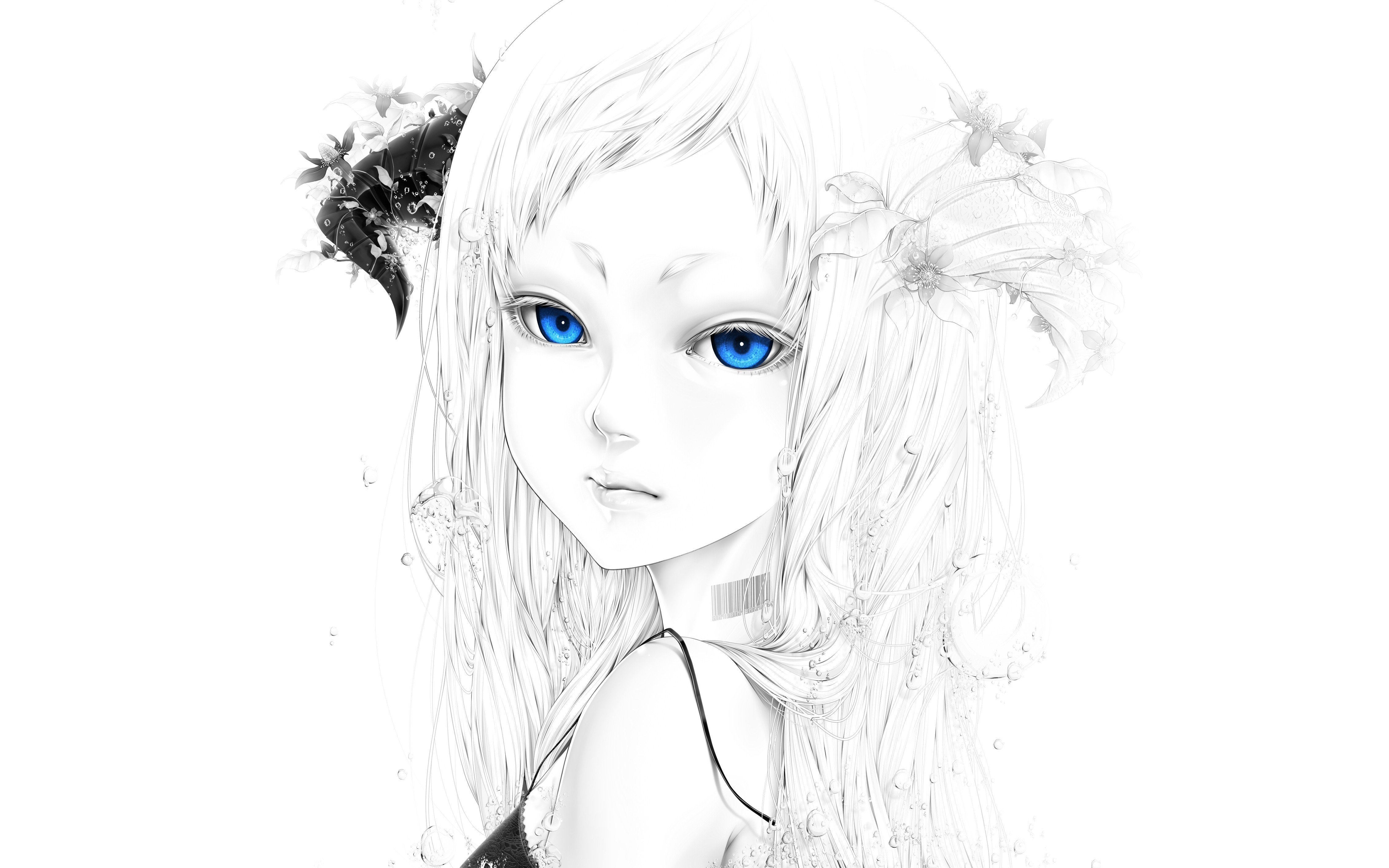 ![Девушка с чёрными волосами и серыми глазами арт]()