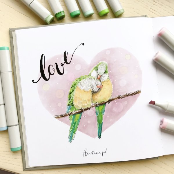 ![Рисунок в скетчбук легкий маркерами]()