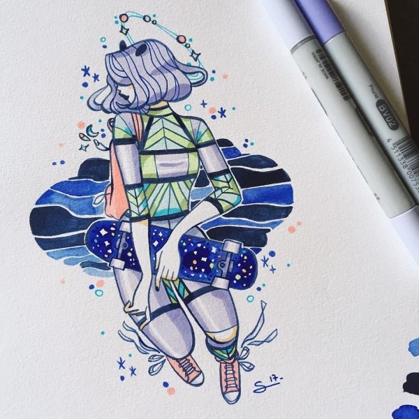 Рисунок в скетчбук легкий маркерами