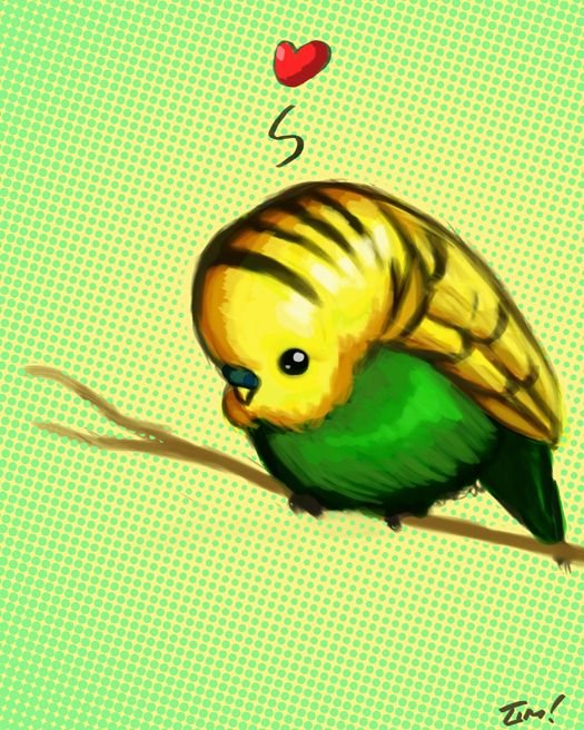 ![Рисунки милых попугайчиков]()