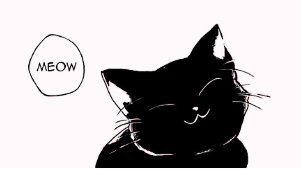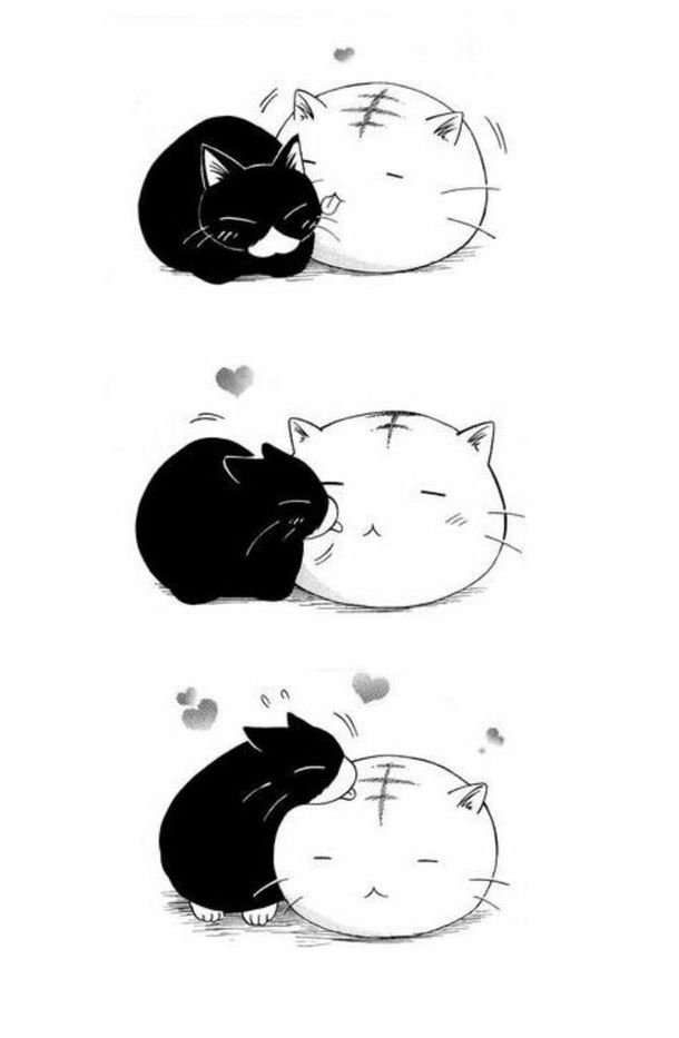 ![Милый котик черно белый арт]()
