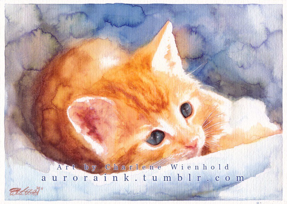 ![Рыжий котенок акварель]()