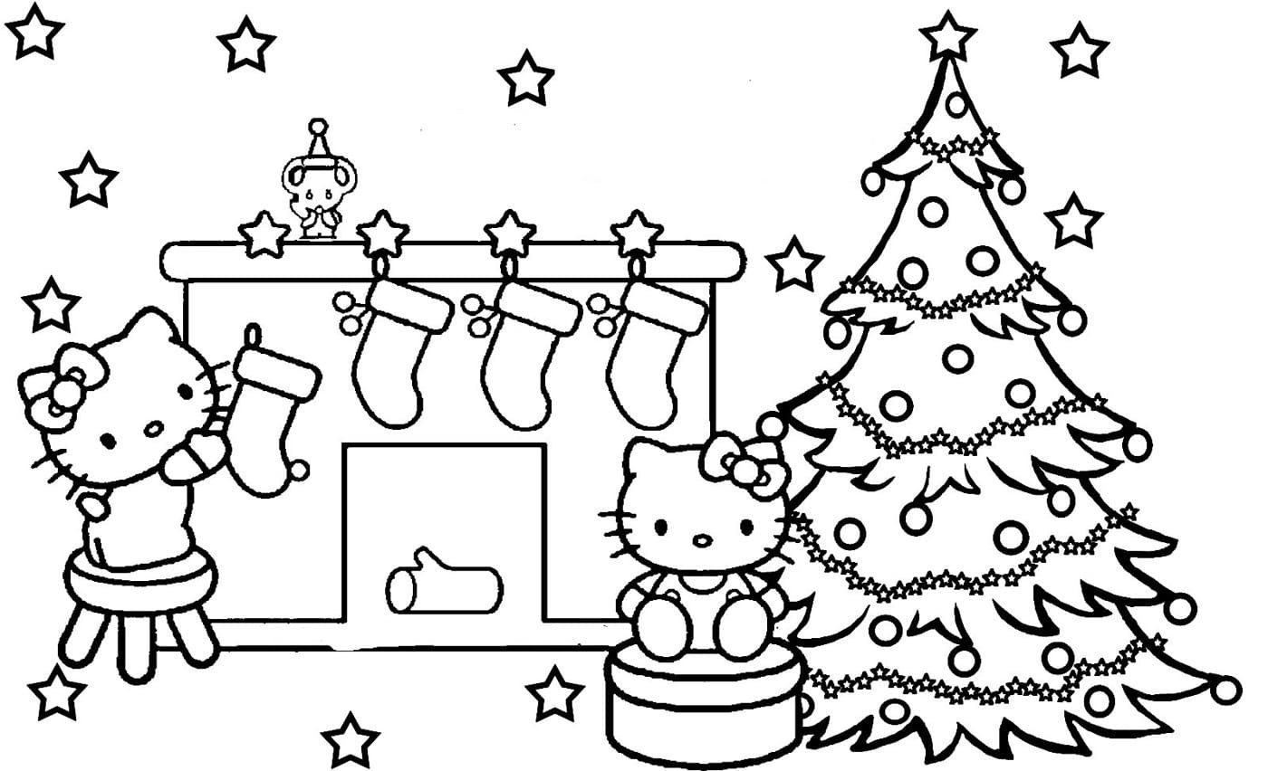 ![Раскраска Хелло Китти новый год]()