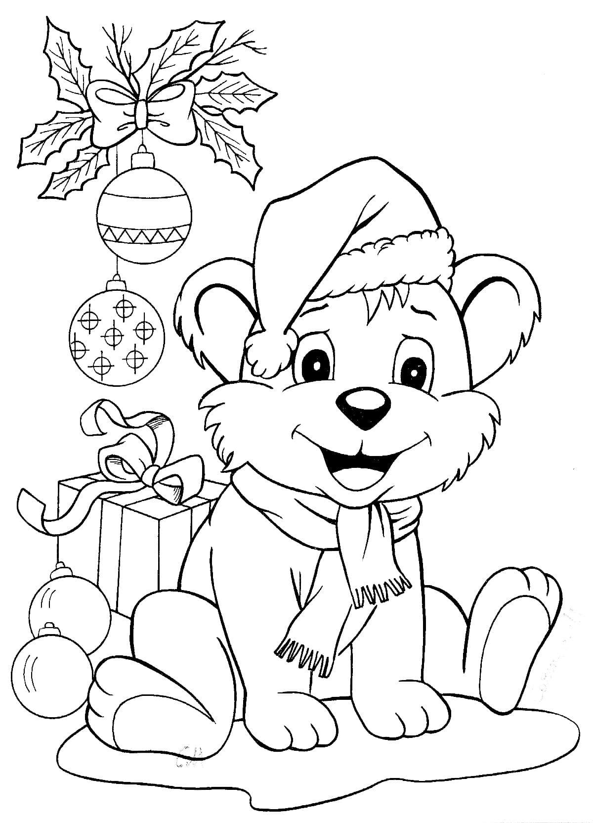Новогодний Медвежонок раскраска