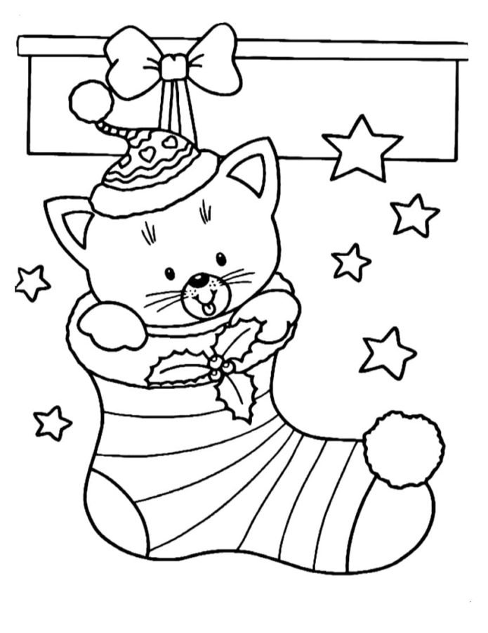 Новогодняя кошка раскраска