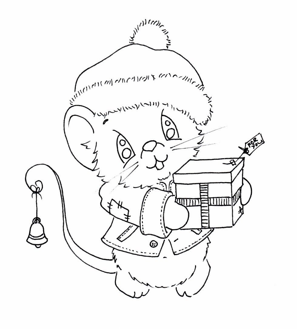 ![Раскраска мышонок новогодний]()