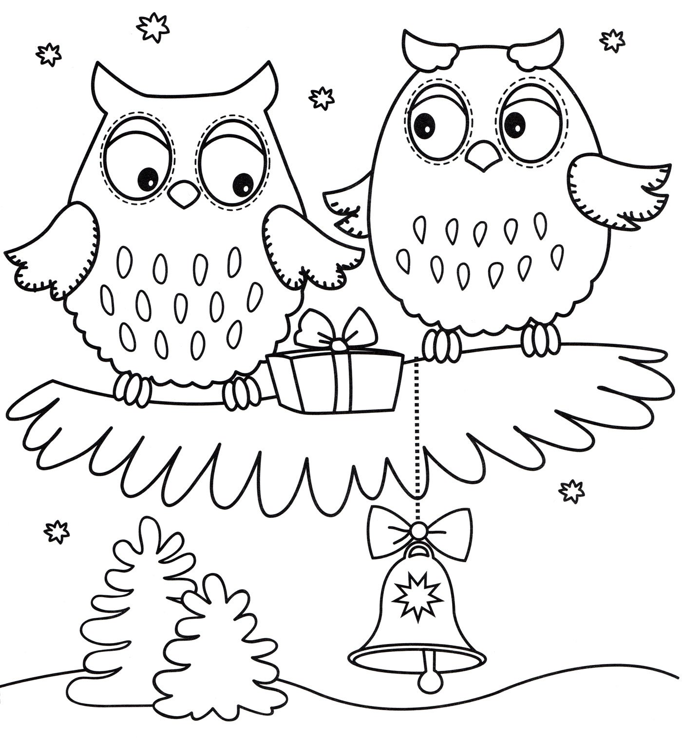 ![Новогодняя Сова раскраска]()