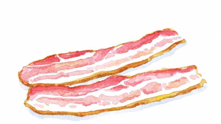 ![Бекон ломтики лежат рисунок акварелью]()