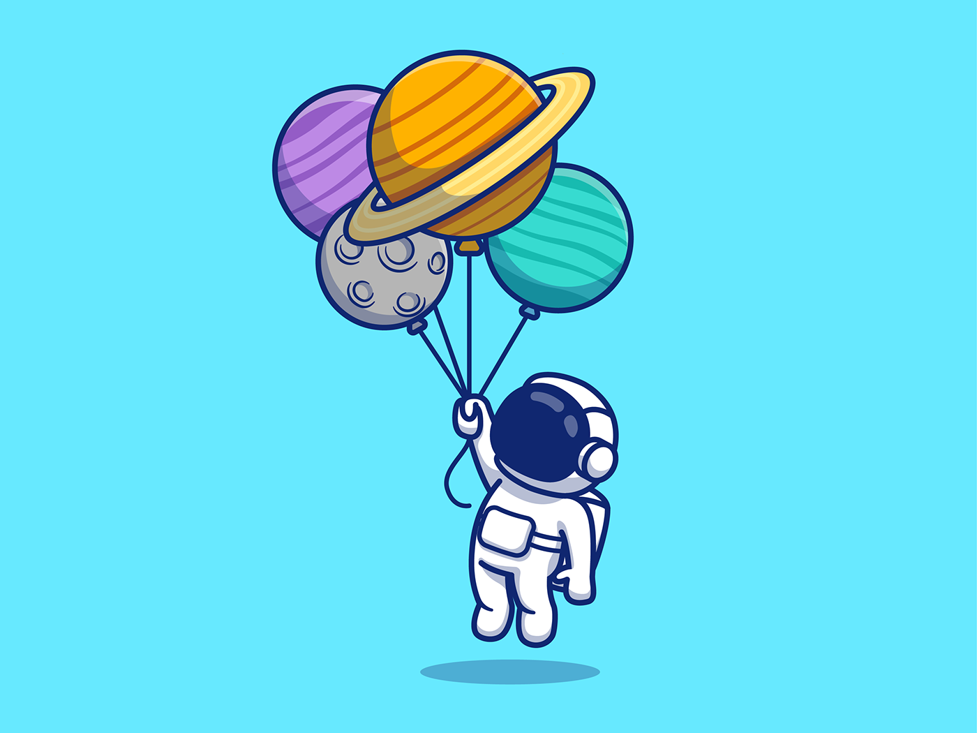 ![Космонавт с шариками планетами]()