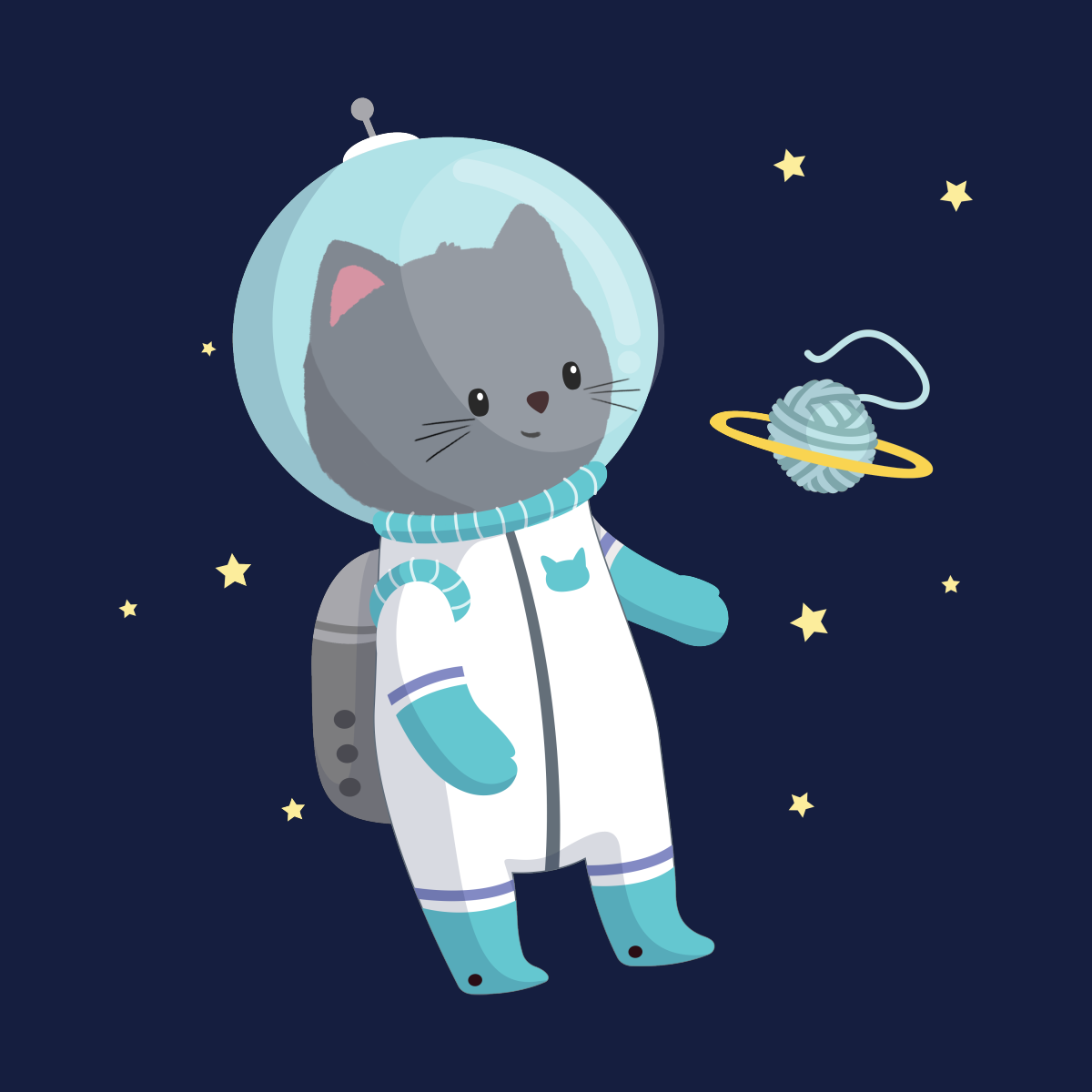 ![Мультяшные котики космонавты]()