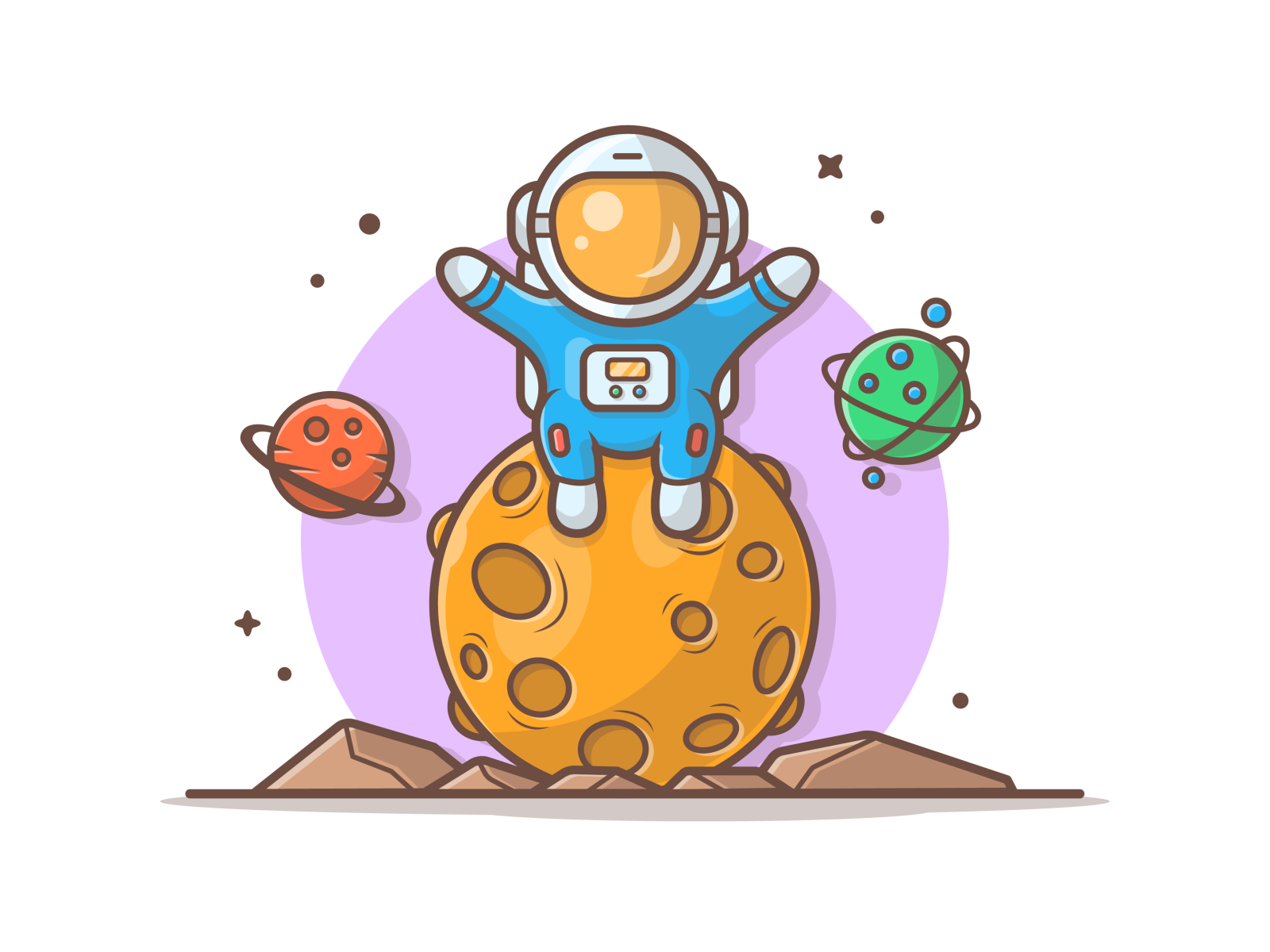 ![Космонавт сидит на планете]()