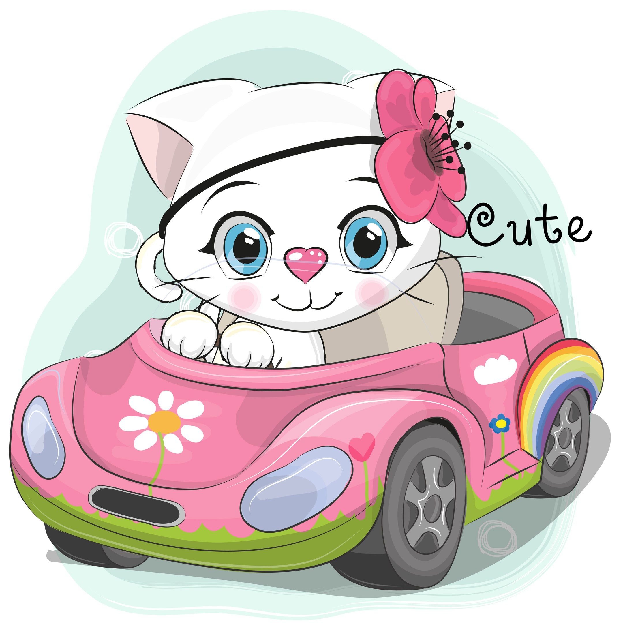 ![Розовая машина мультяшная]()