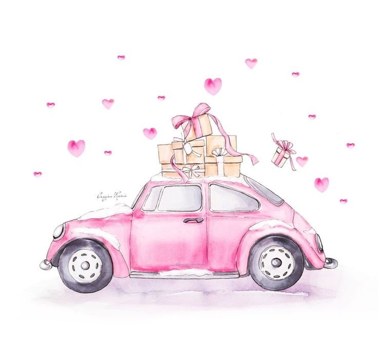 ![Машинка с подарками акварель]()