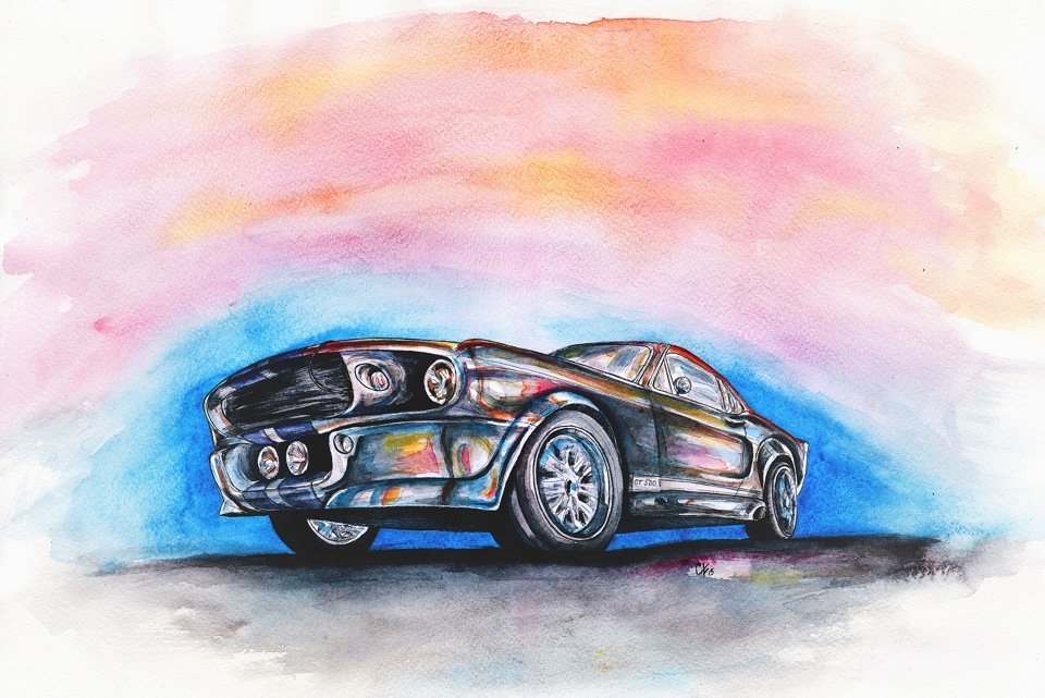 ![Форд Мустанг акварель]()