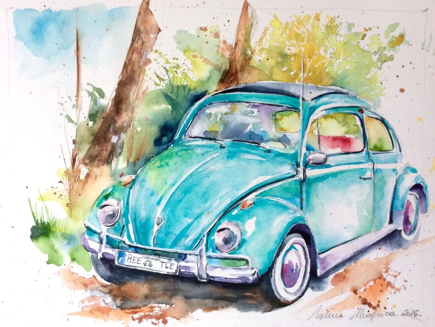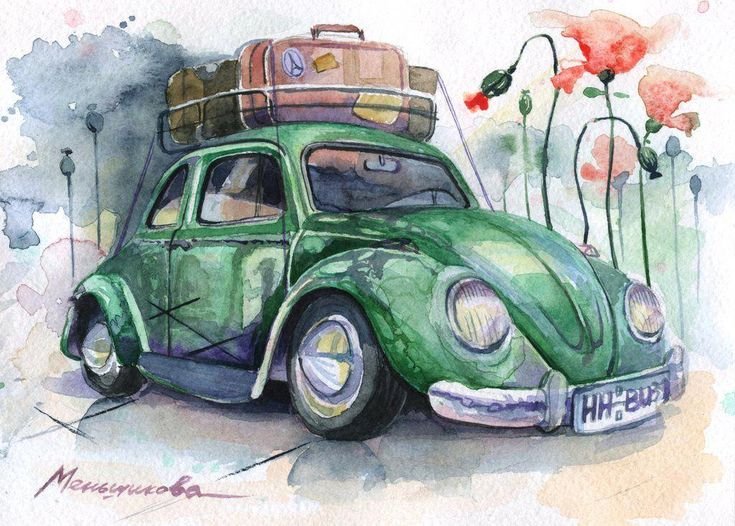 ![Машинка акварелью]()