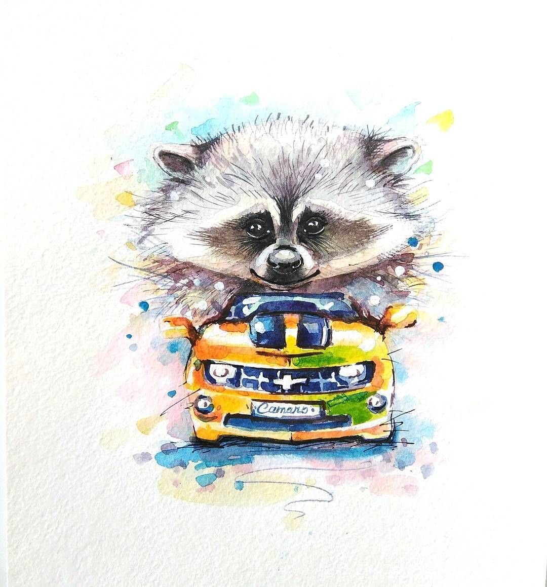 ![Акварельные енот рисунки]()