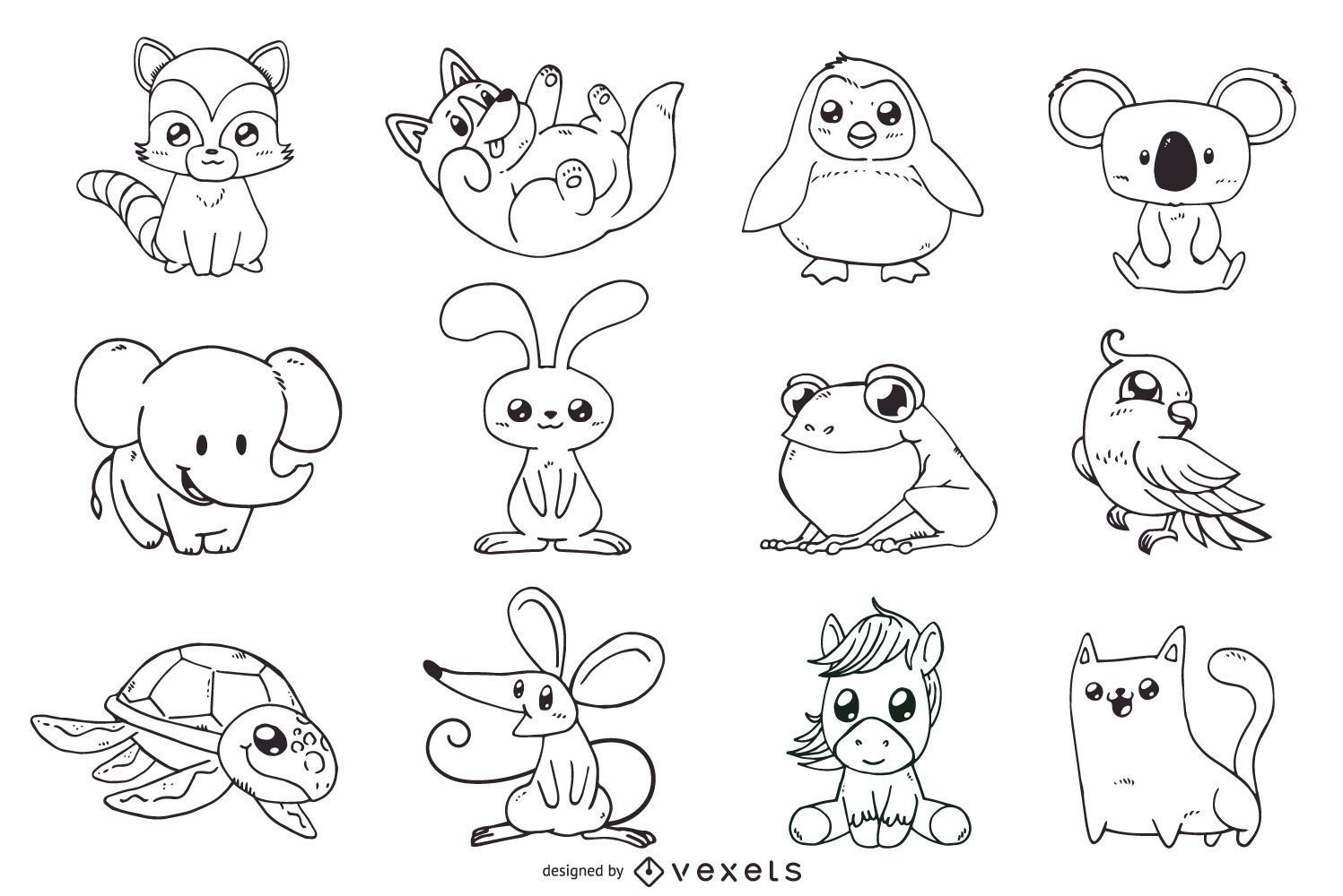 Раскраски кавайных животных