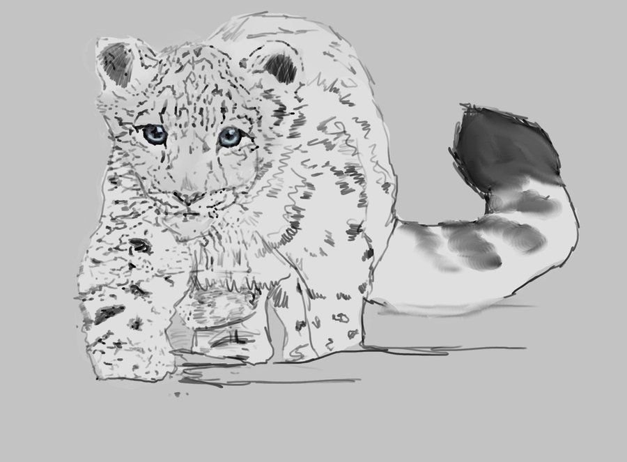 Снежный Барс котенок рисунок
