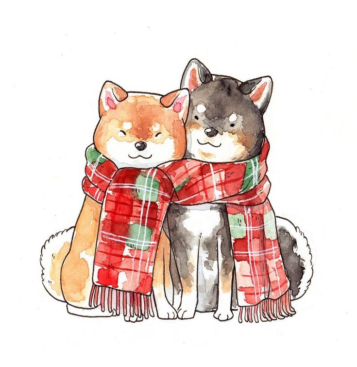 ![Шиба ину щенки арт]()