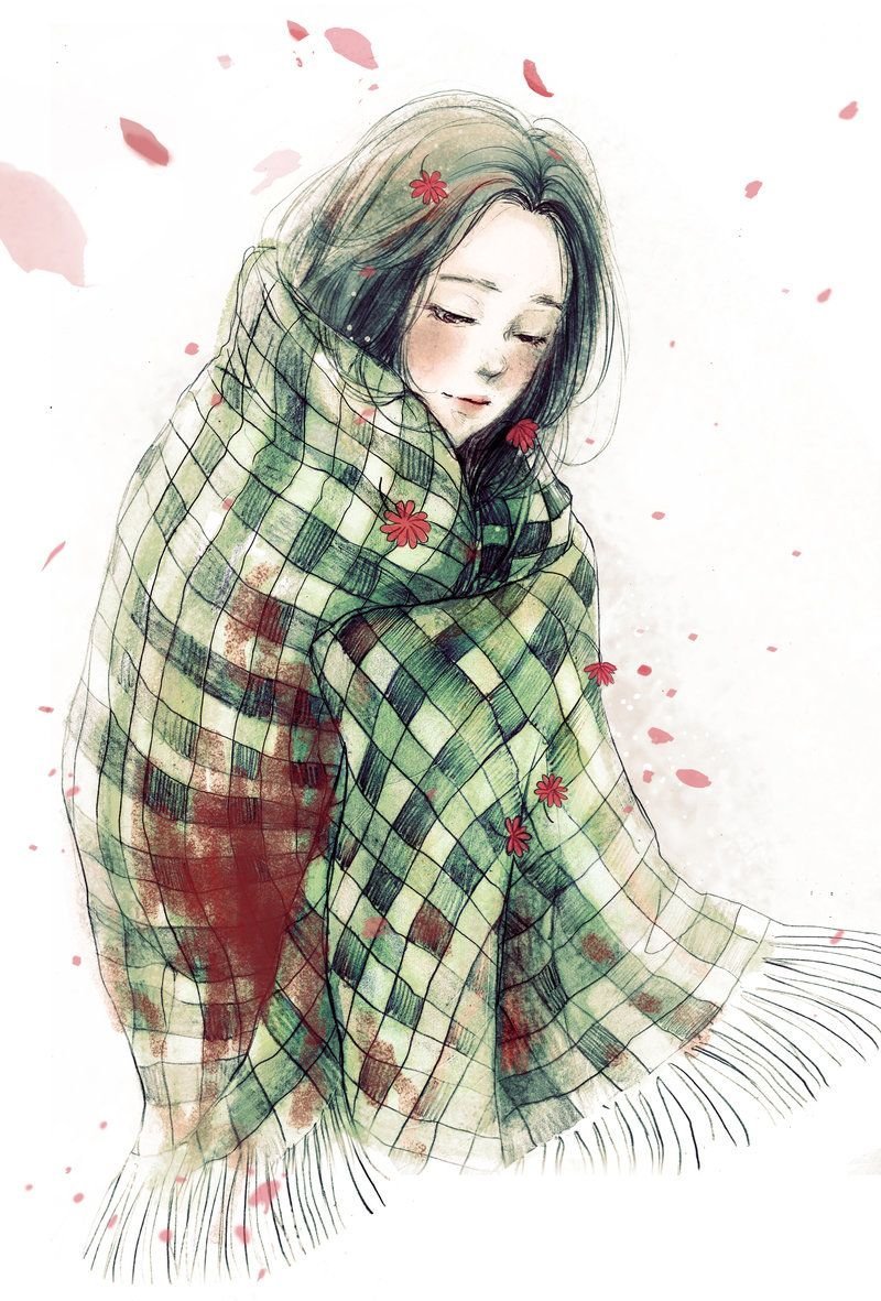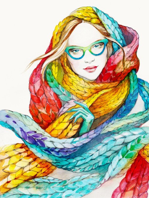 ![Девушка в шарфе арт]()