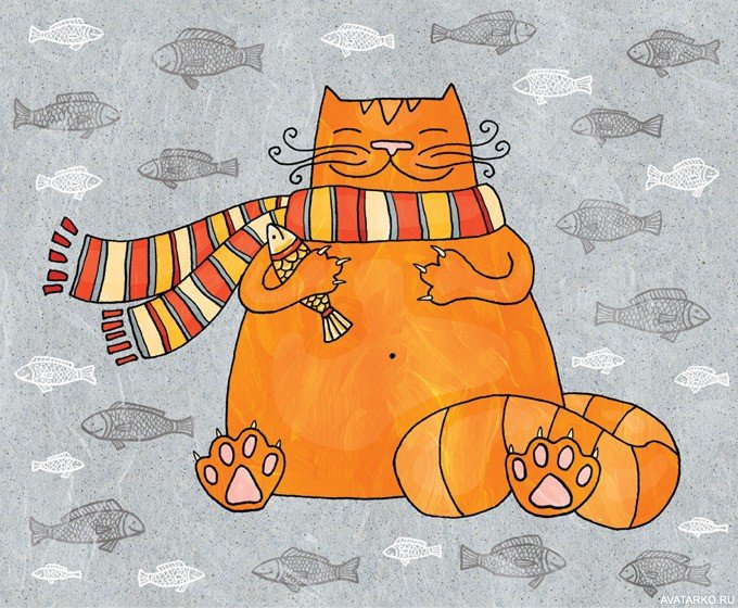 ![Кот в шарфе мультяшный]()