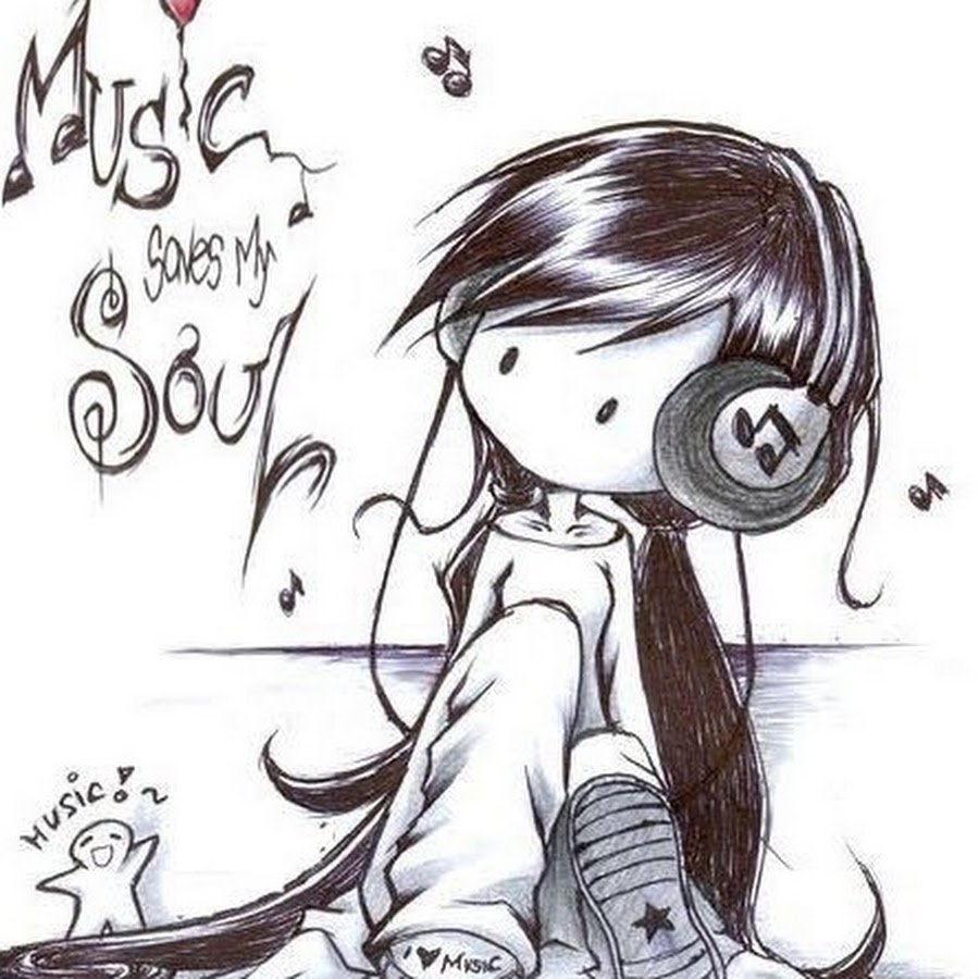 ![Девочка с плеером рисунок]()
