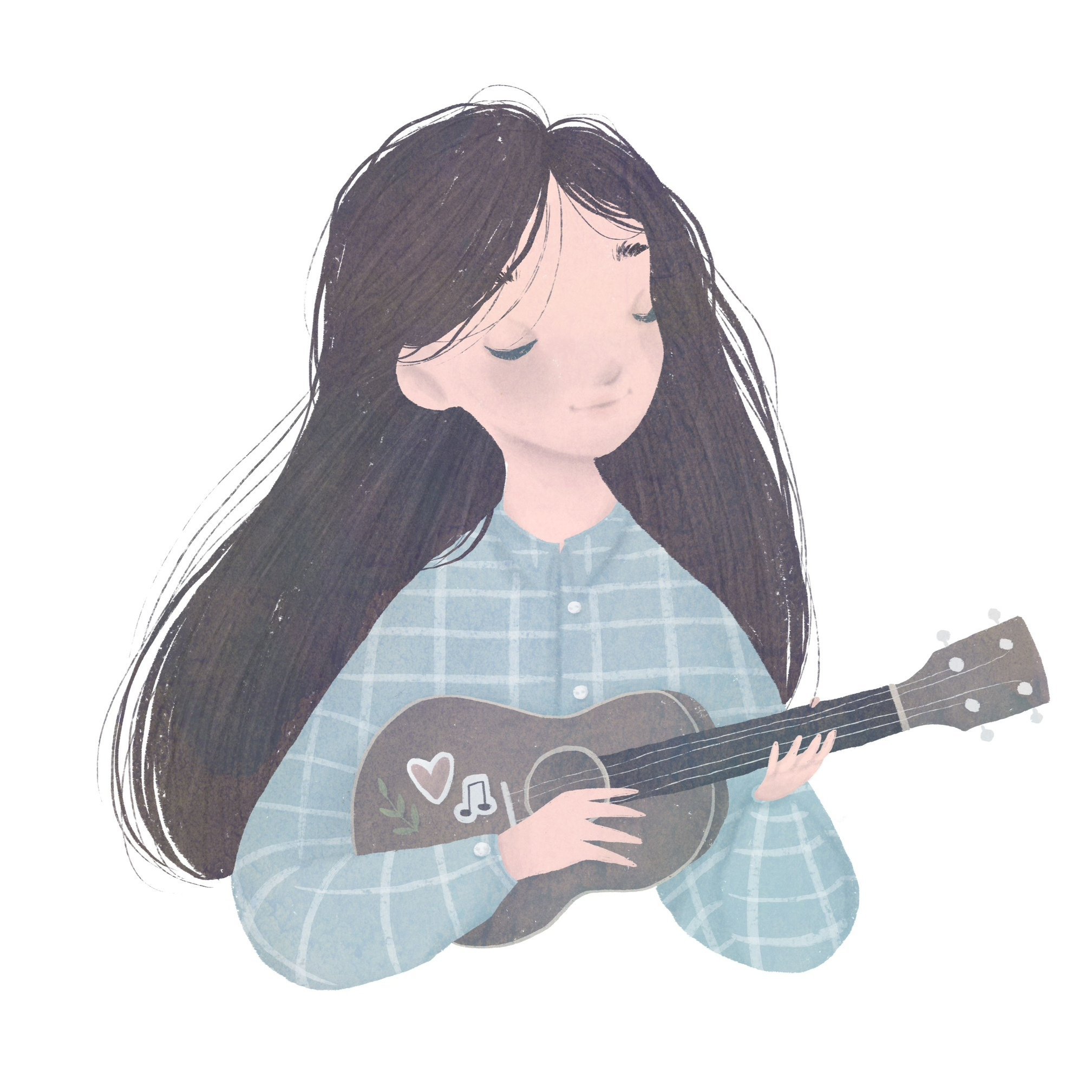 ![Нарисованная девушка с укулеле]()