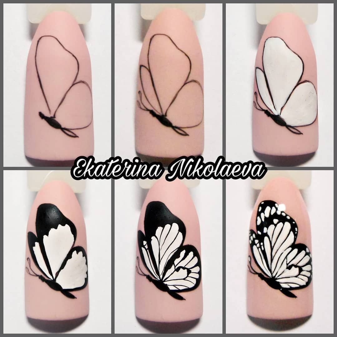 Бабочка на ногтях пошагово