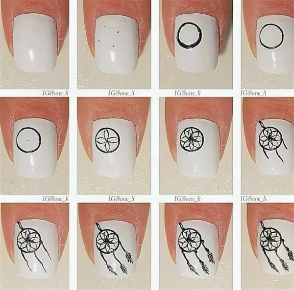 ![Идеи рисунков на ногтях пошагово]()