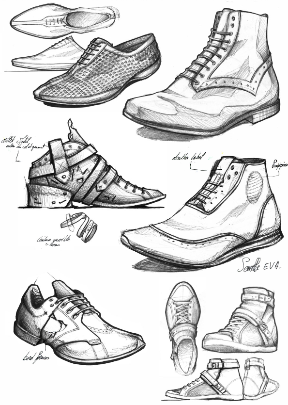 ![Дизайнерские скетчи обуви]()