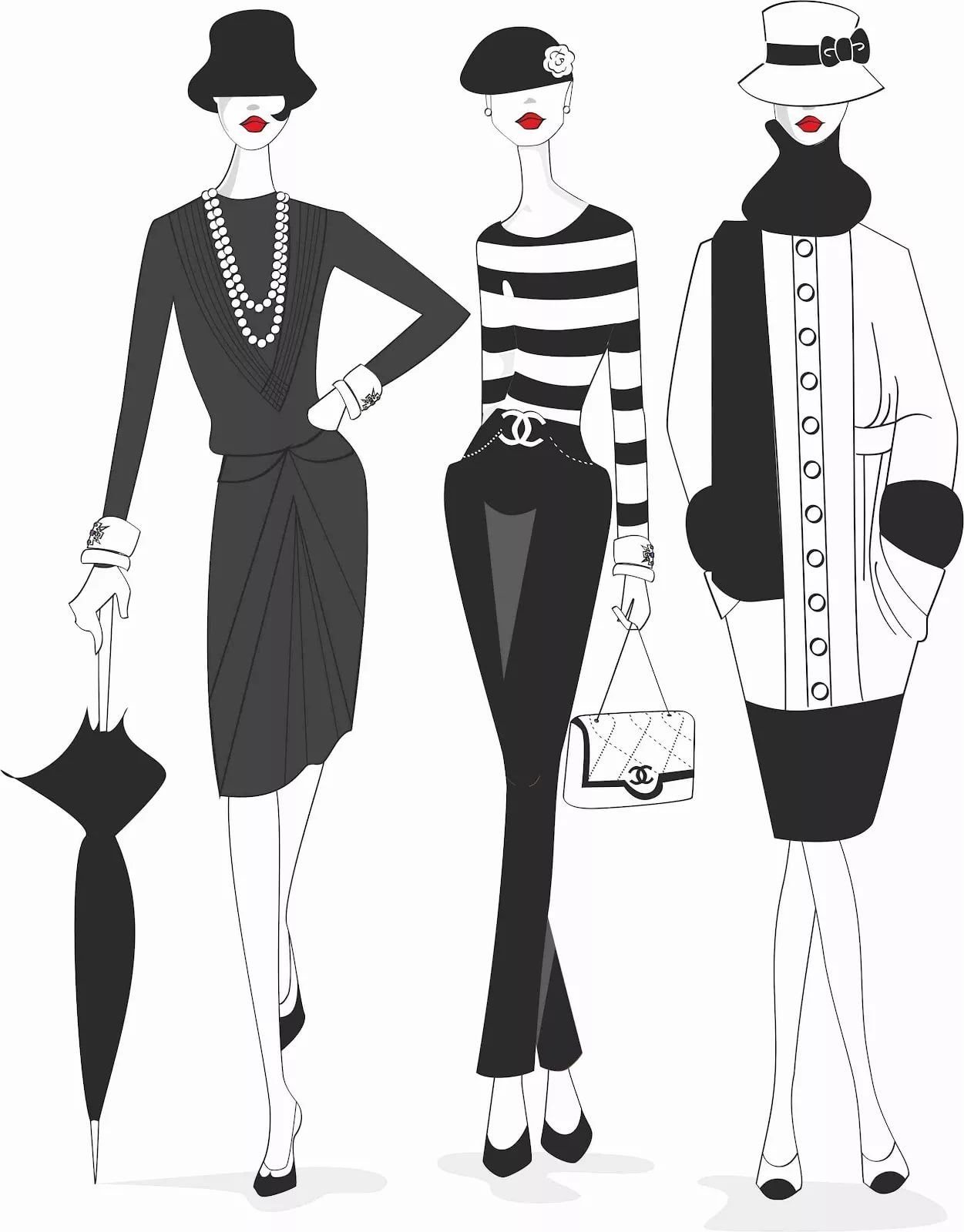 ![Коко Шанель фэшн иллюстрация]()