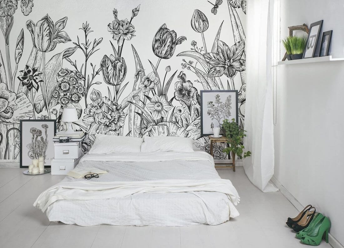 ![Монохромная роспись стен в интерьере]()