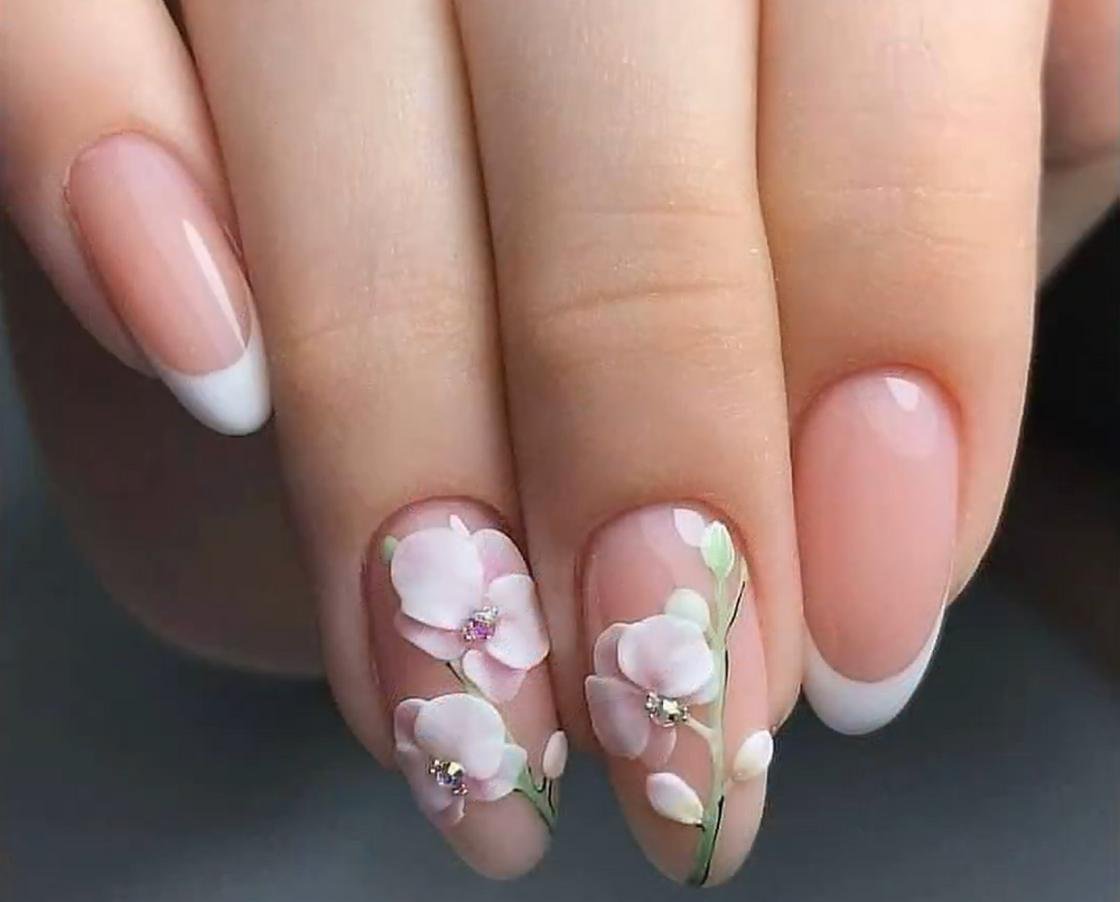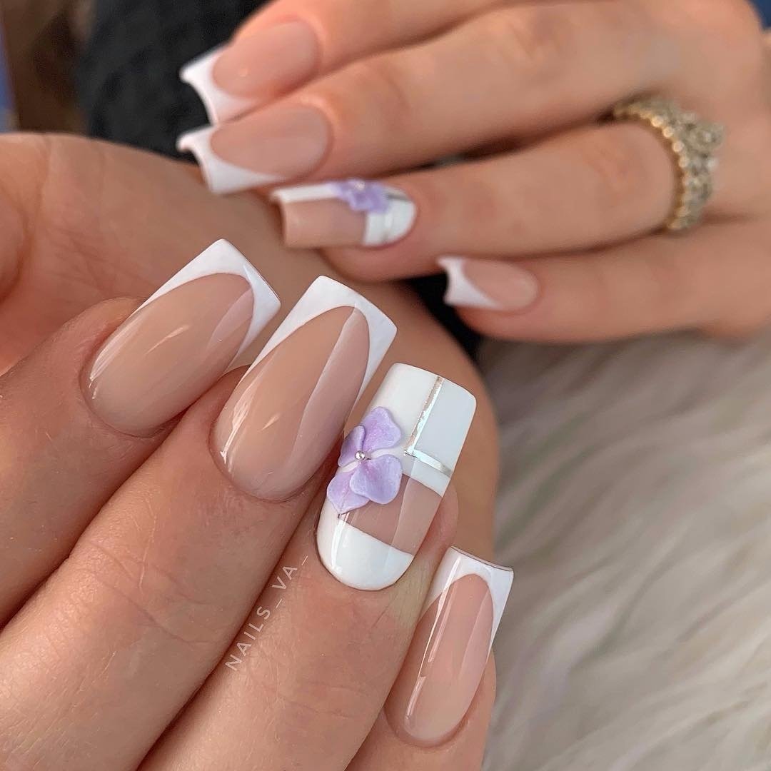 Французский маникюр с цветами