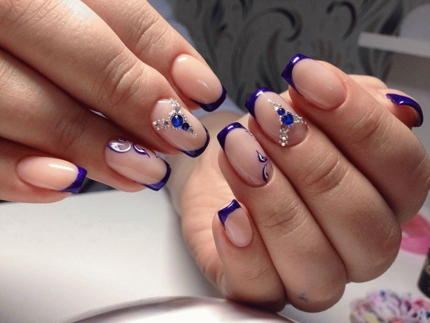 ![Французский маникюр синий]()