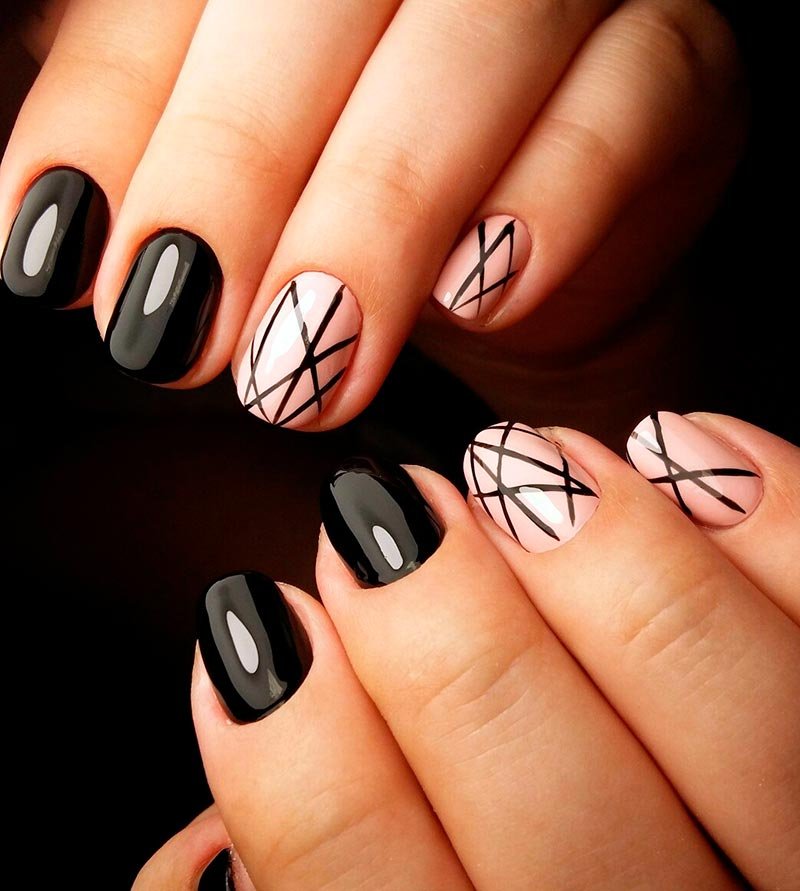 Маникюр на короткие ногти с полосками