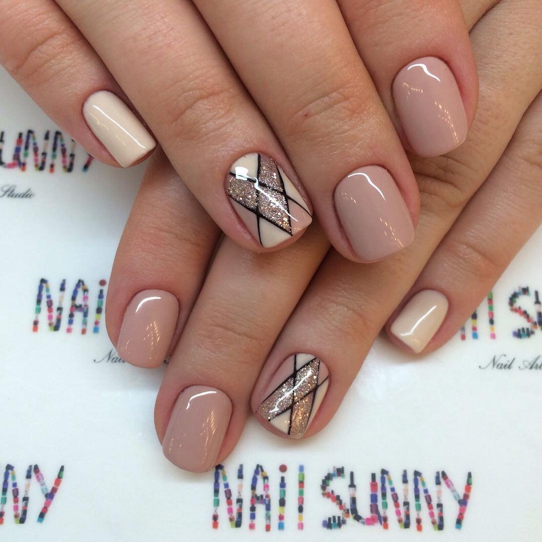 Бежевый маникюр с геометрией