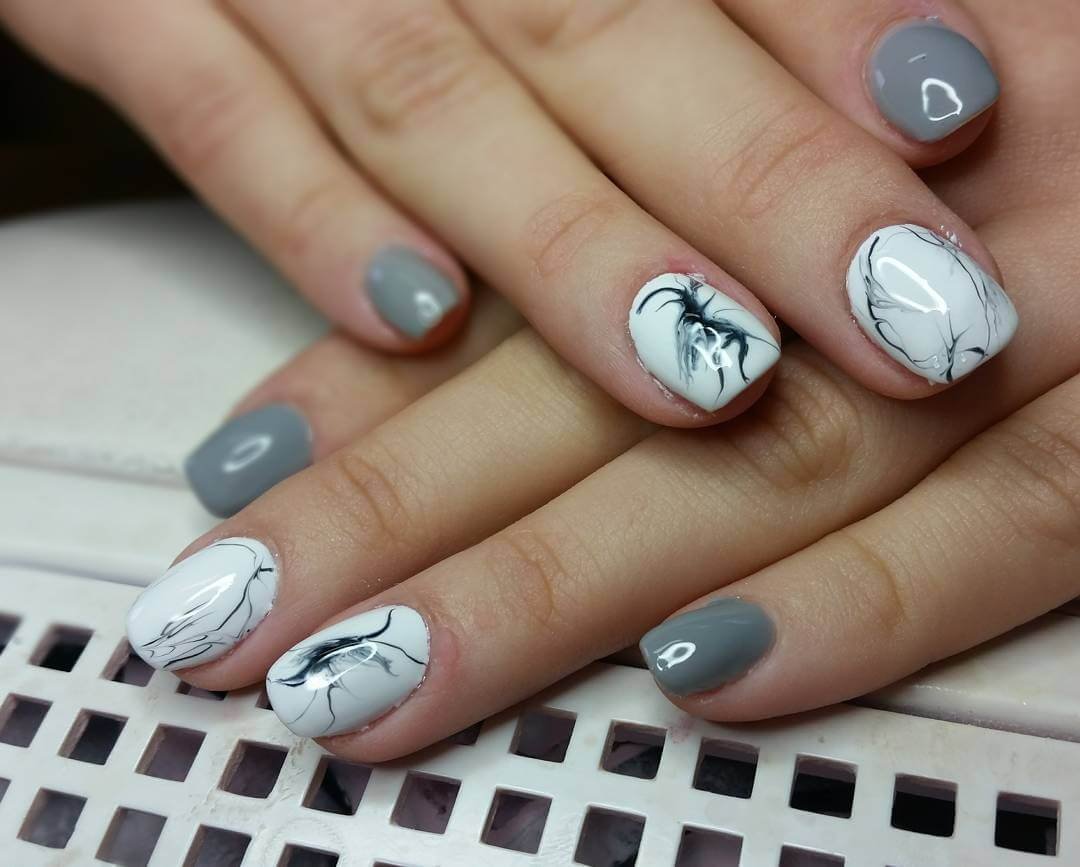 Серый мраморный маникюр