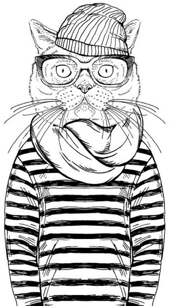 ![Кот в очках рисунок]()