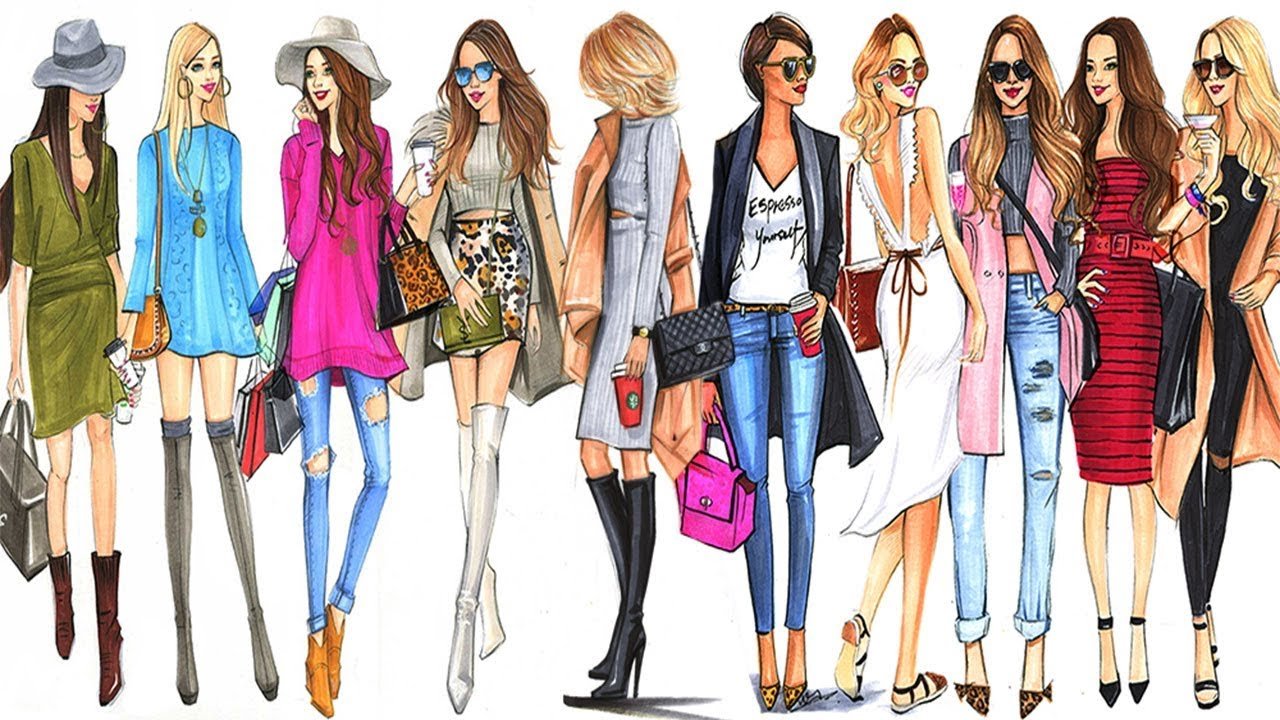Модные нарисованные девушки