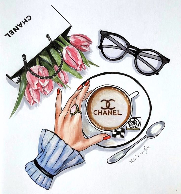 ![Модные иллюстрации Шанель]()
