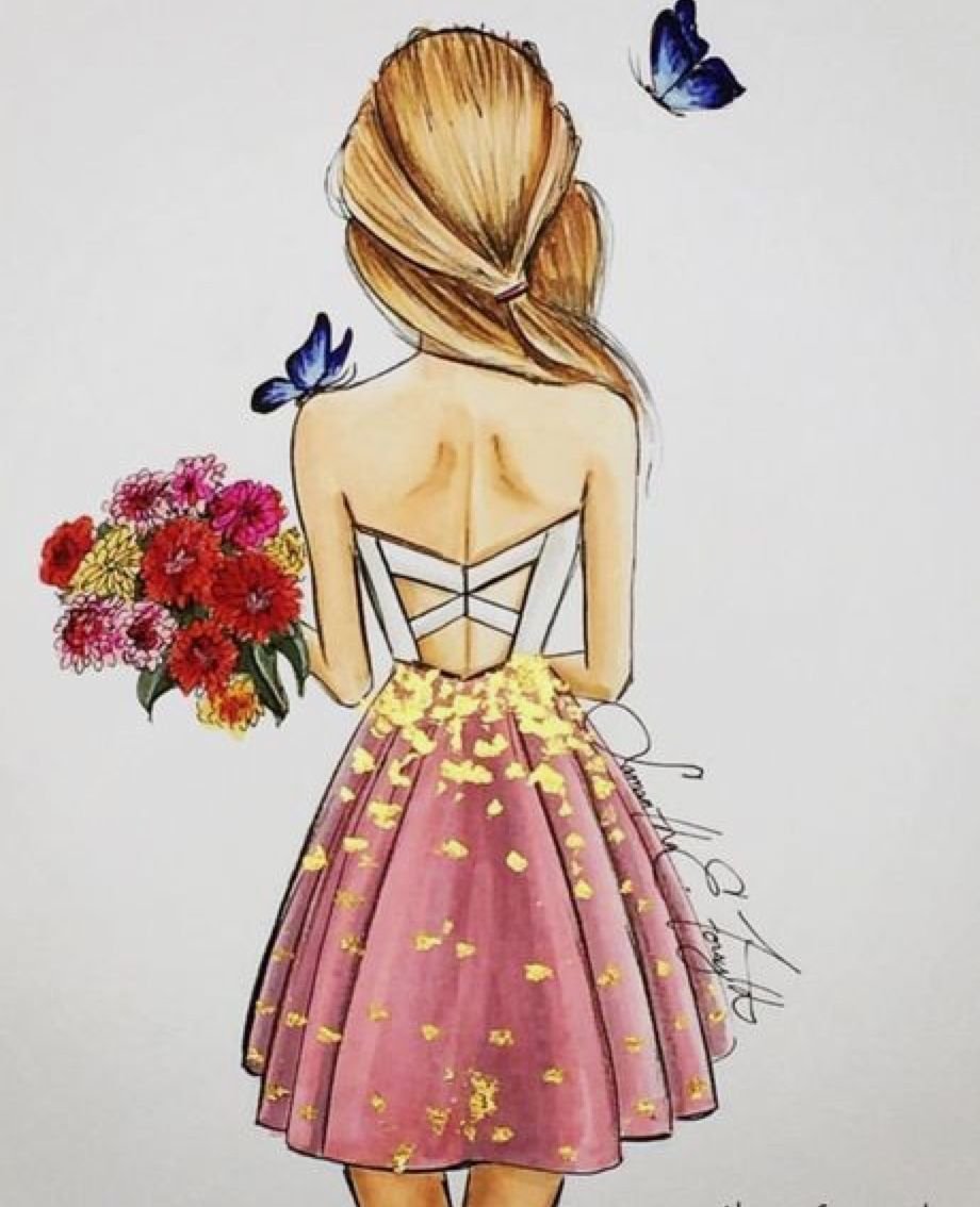 ![Нарисованная девушка со спины]()