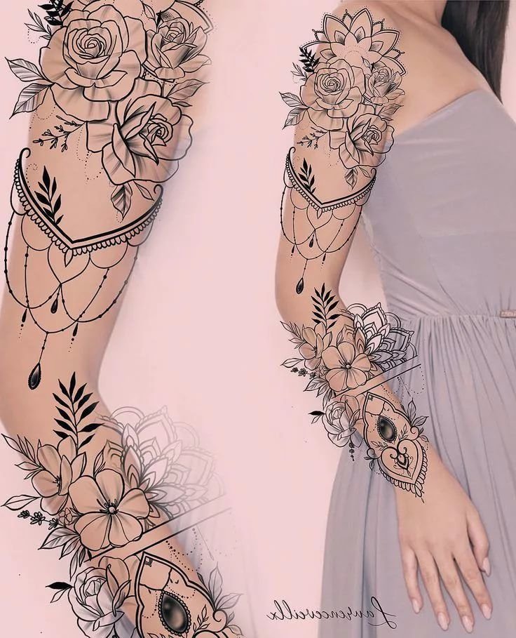 ![Тату рукав для девушек эскизы]()