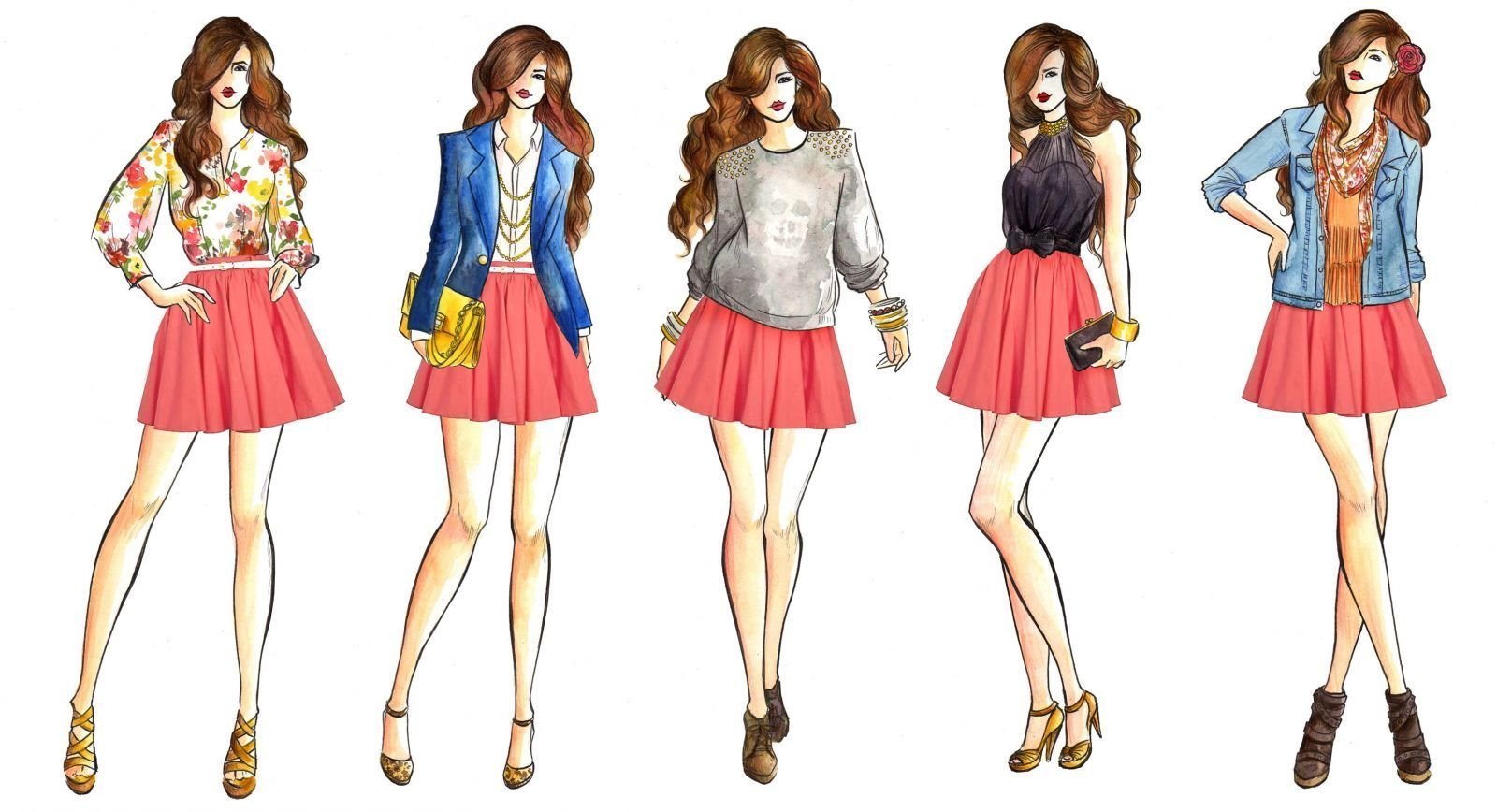 ![Модные иллюстрации одежды]()
