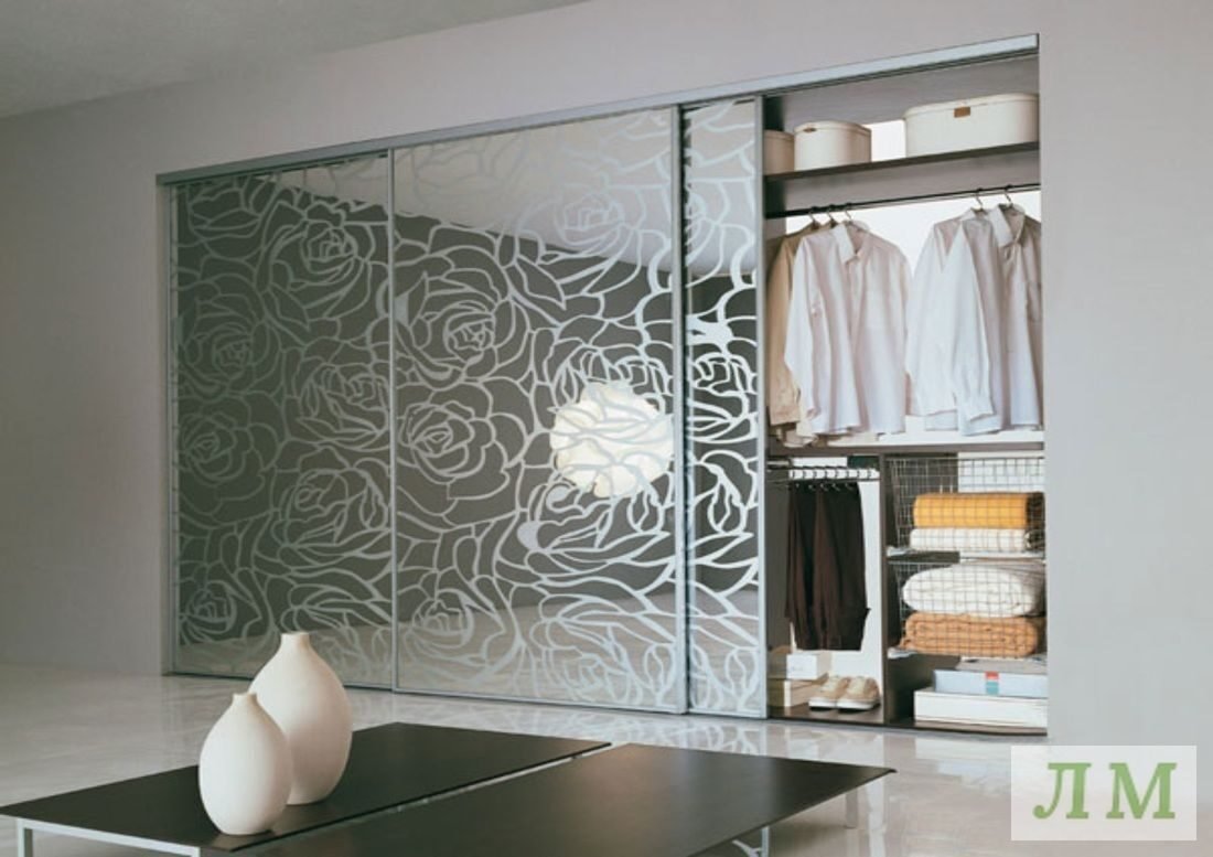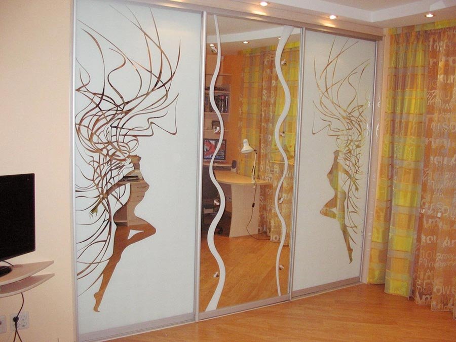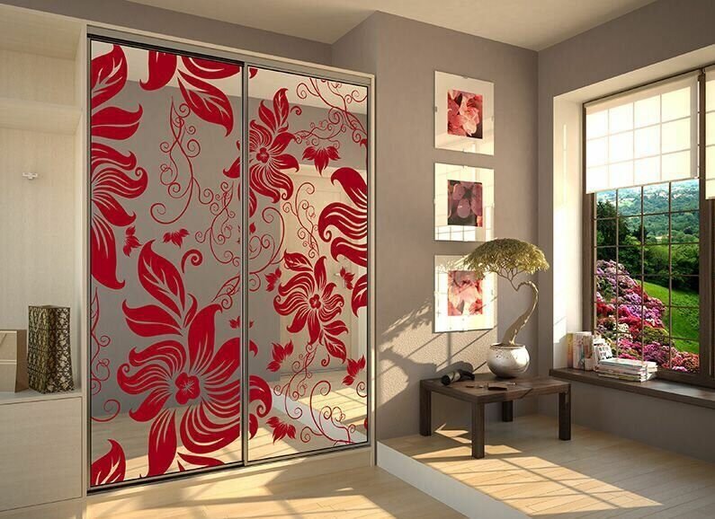 ![Пескоструйный рисунок на зеркале шкафа купе]()