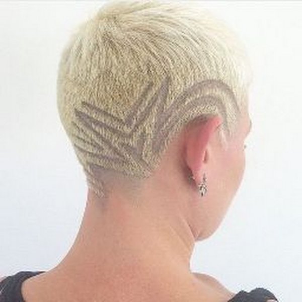 ![Короткая стрижка с узором на затылке]()