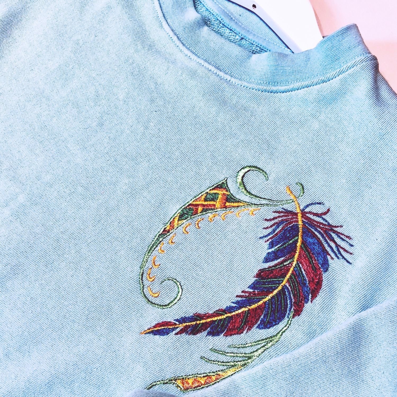 Геометрическая вышивка на толстовке
